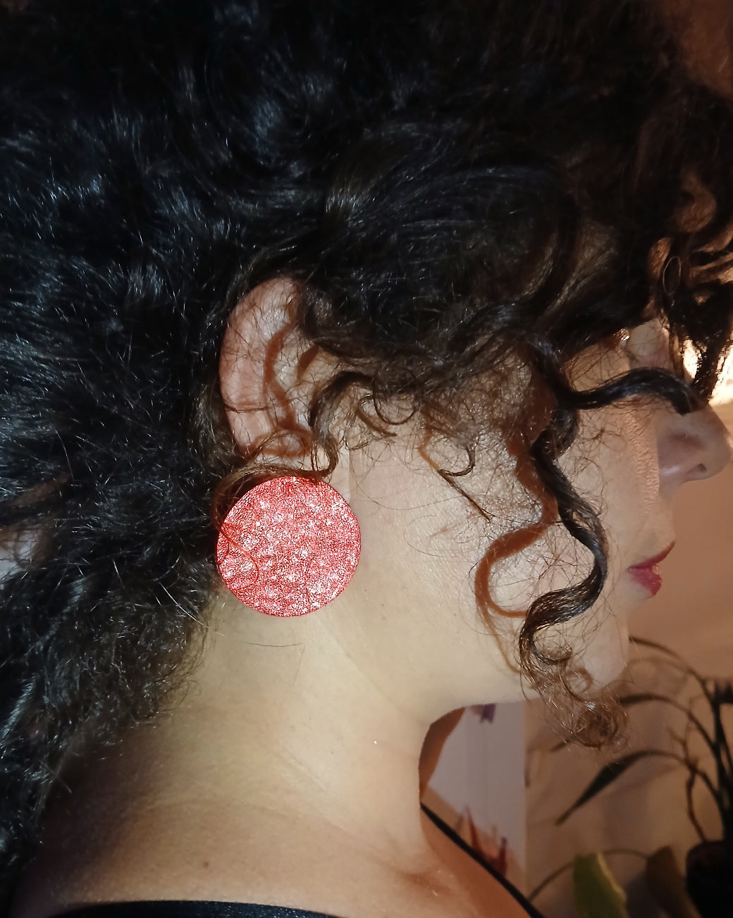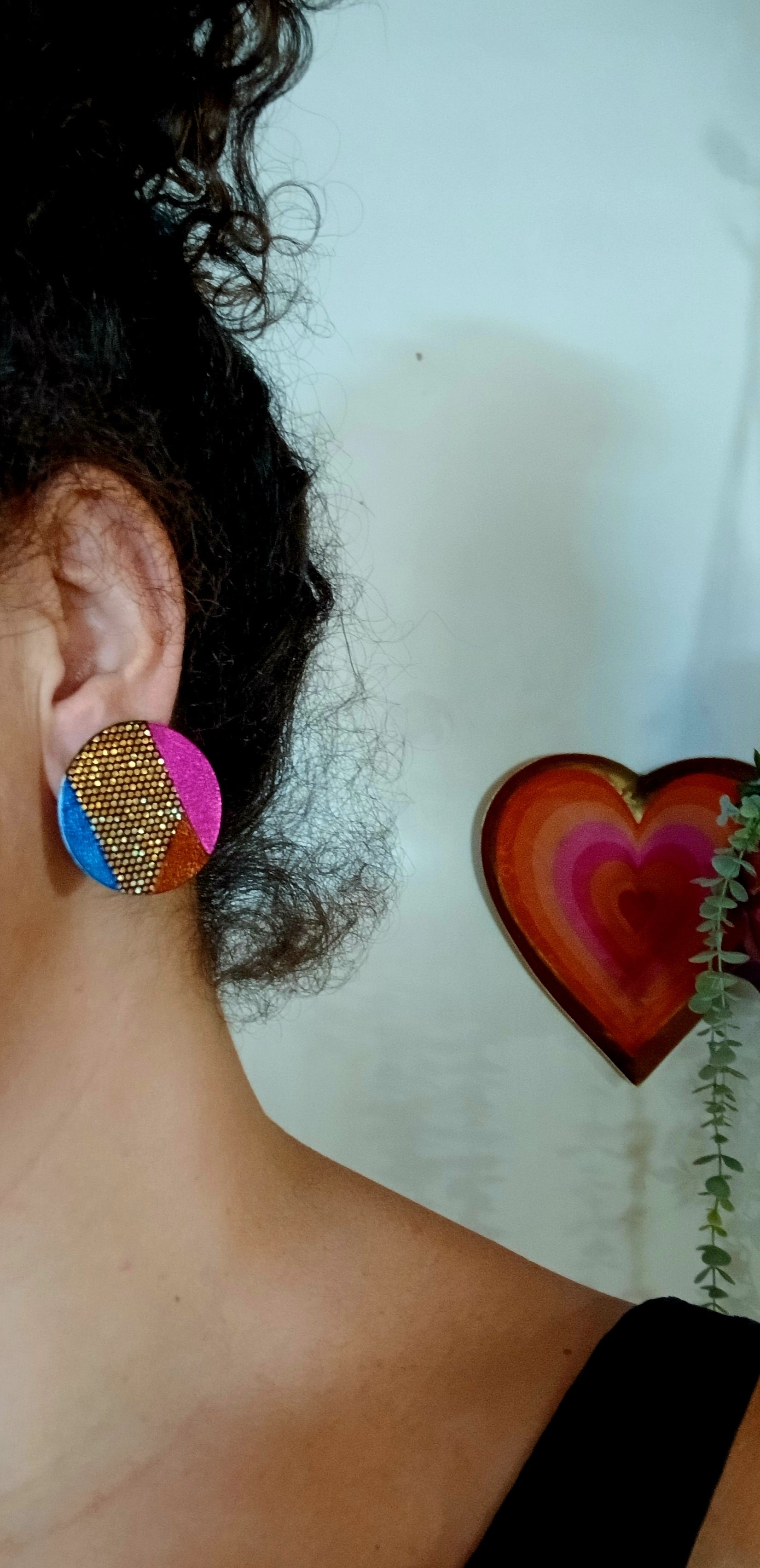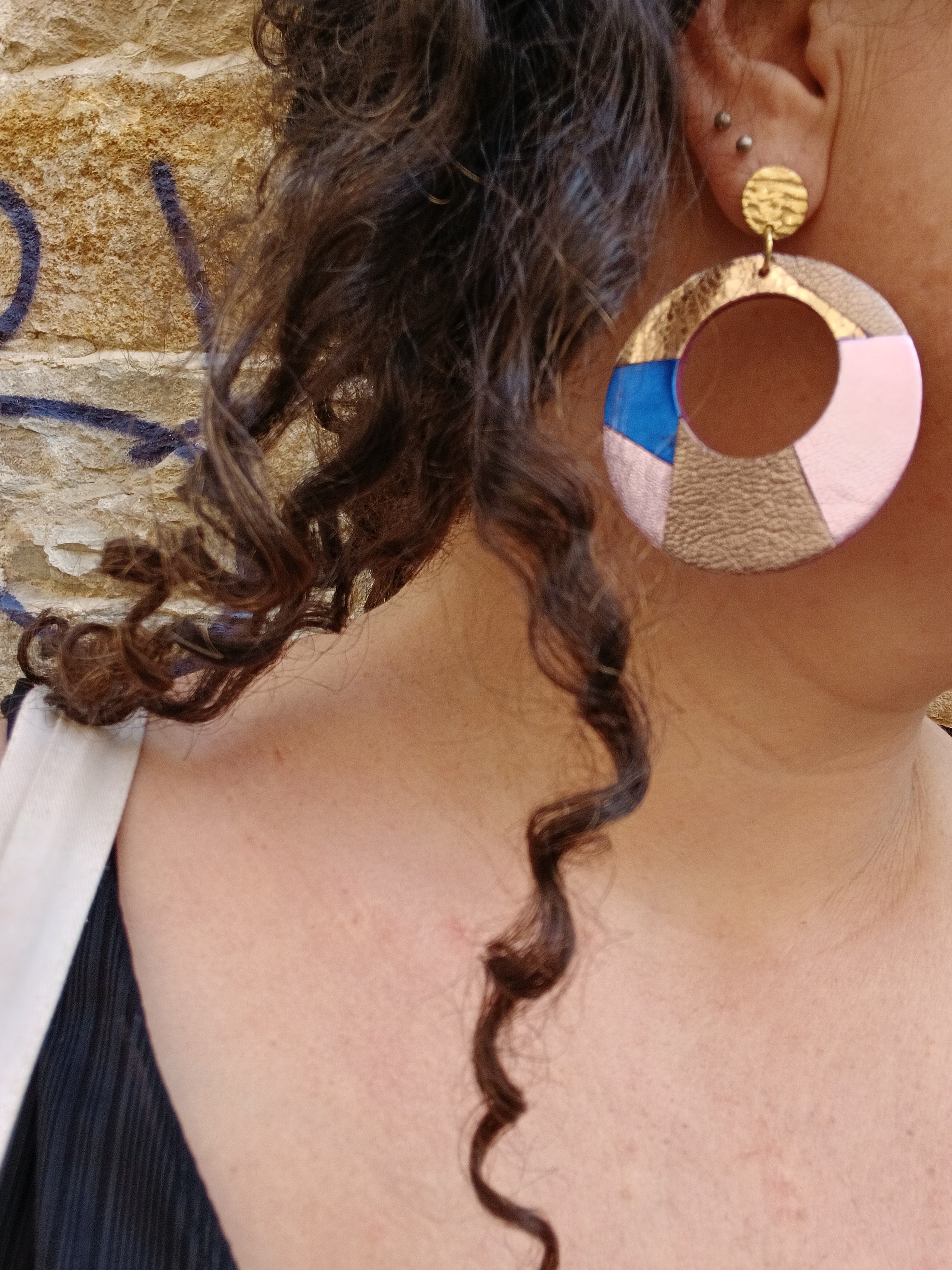 Chaque paire de boucles d’oreilles est le fruit d’un travail artisanal . Fabriquées en petite série, elles se distinguent par leurs matières originales (cuir fantaisie irisé, holographique ou pailleté) et leur design exclusif. -