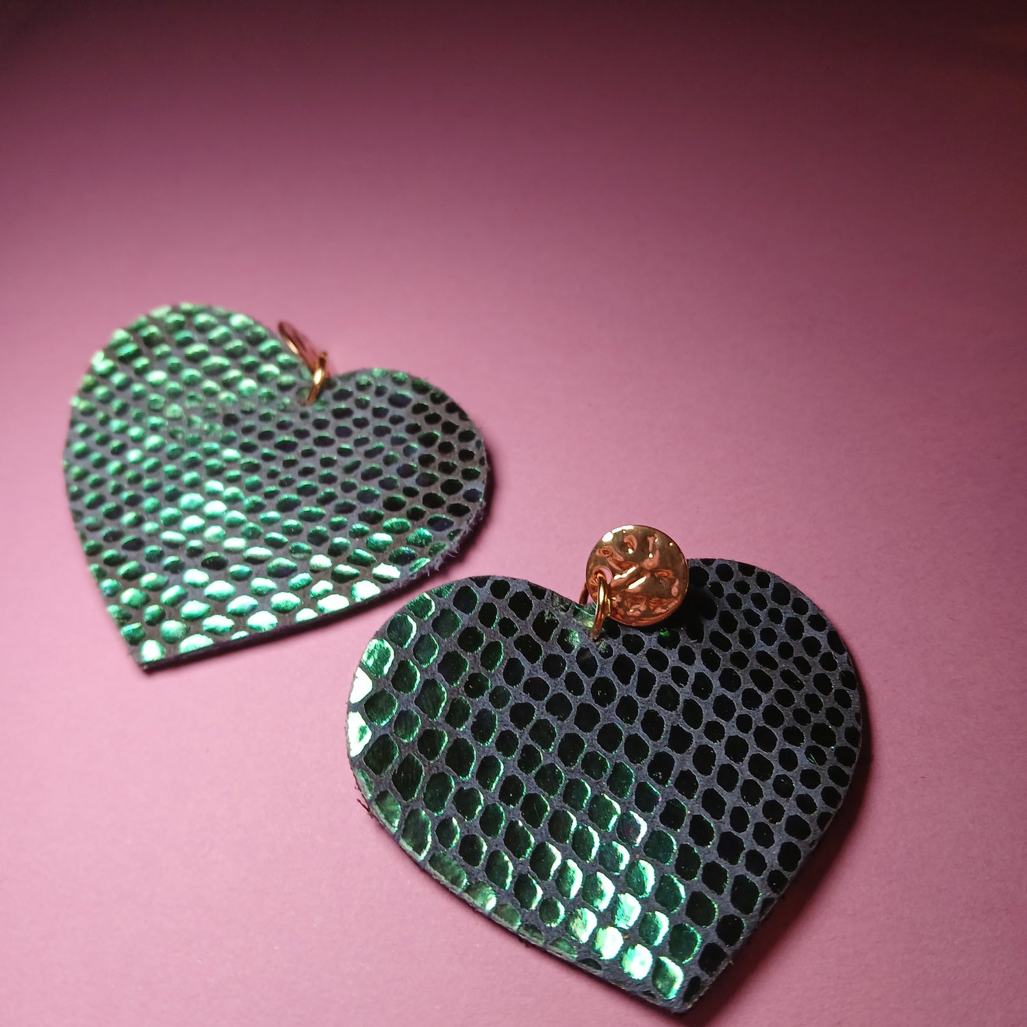 Boucle d'oreilles en cuir fantaisie irisé, holographique, paillettes, de la "Gamme CREOLES...
