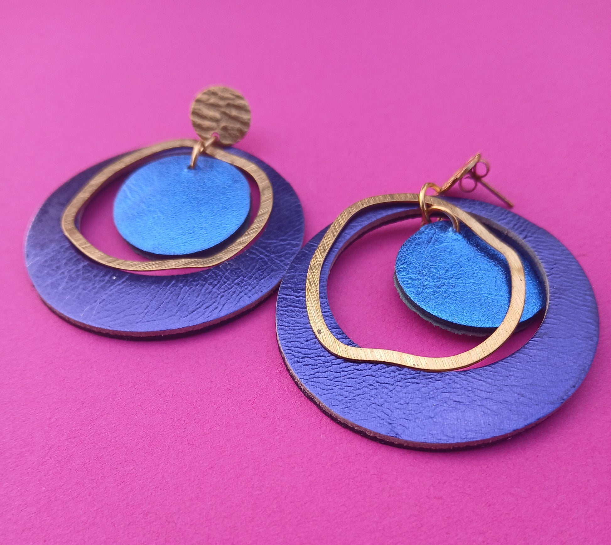 Boucle d'oreilles en cuir fantaisie irisé, holographique, paillettes, de la "Gamme PLANET".