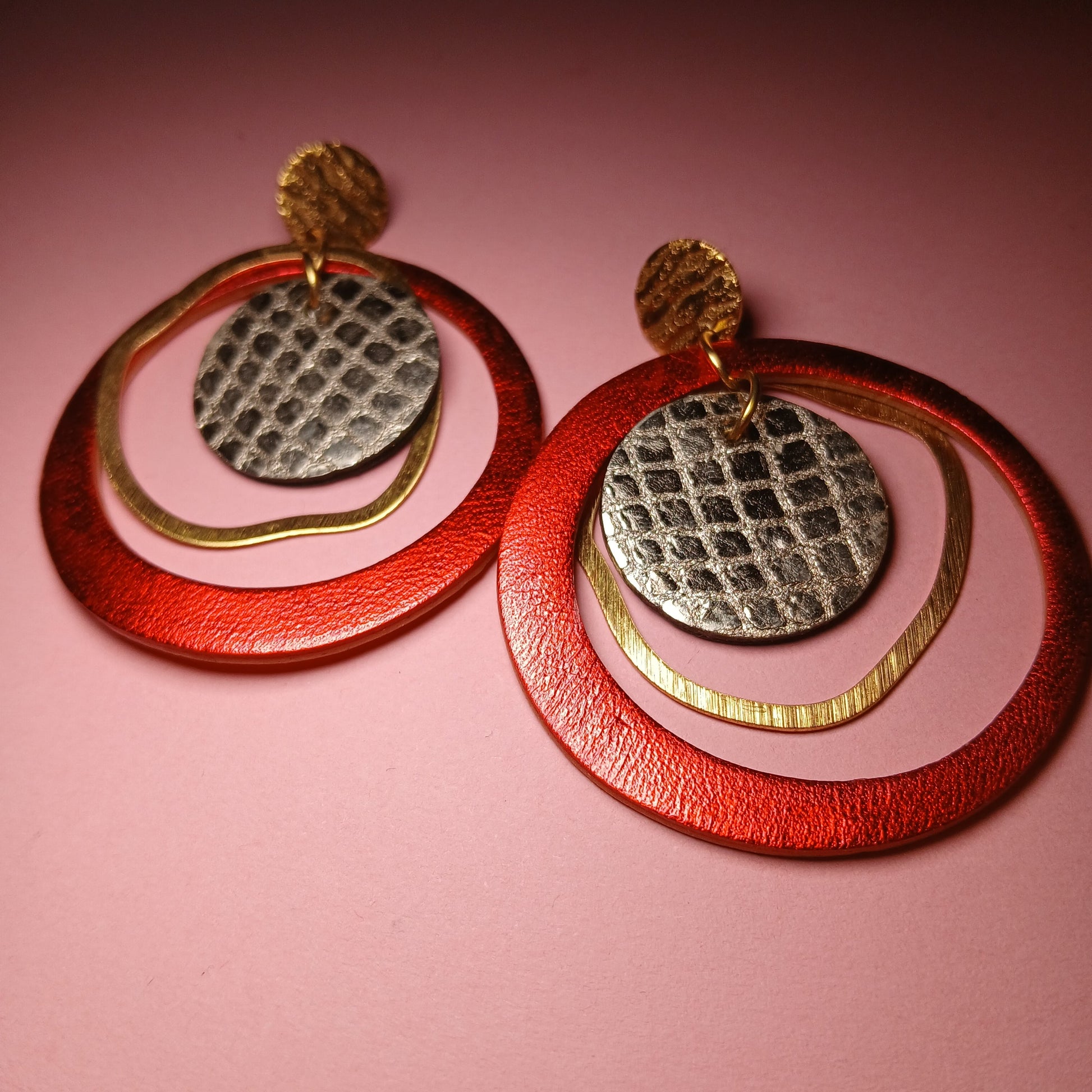 Boucle d'oreilles en cuir fantaisie irisé, holographique, paillettes, de la "Gamme PLANET".