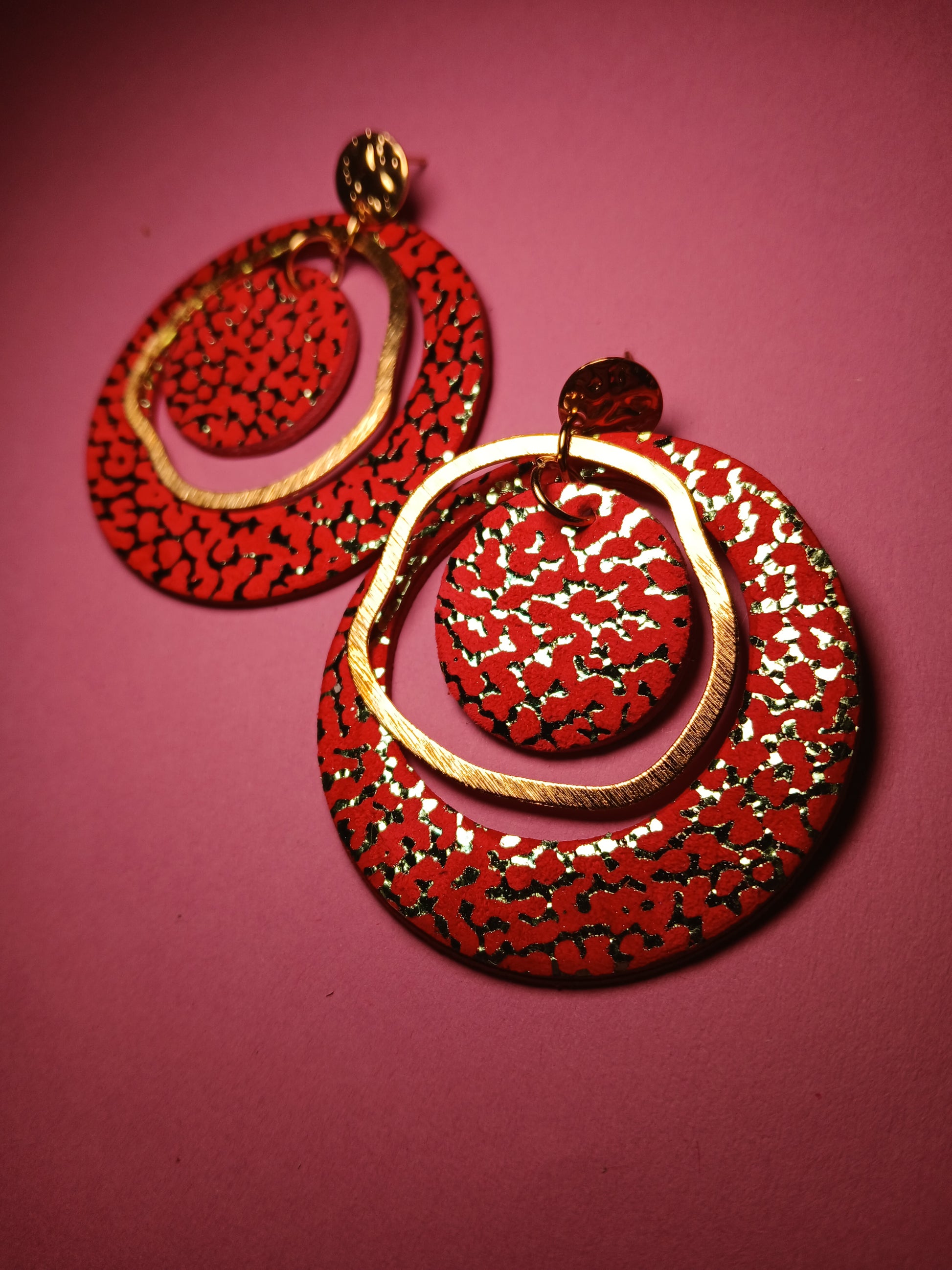 Boucle d'oreilles en cuir fantaisie irisé, holographique, paillettes, de la "Gamme PLANET".