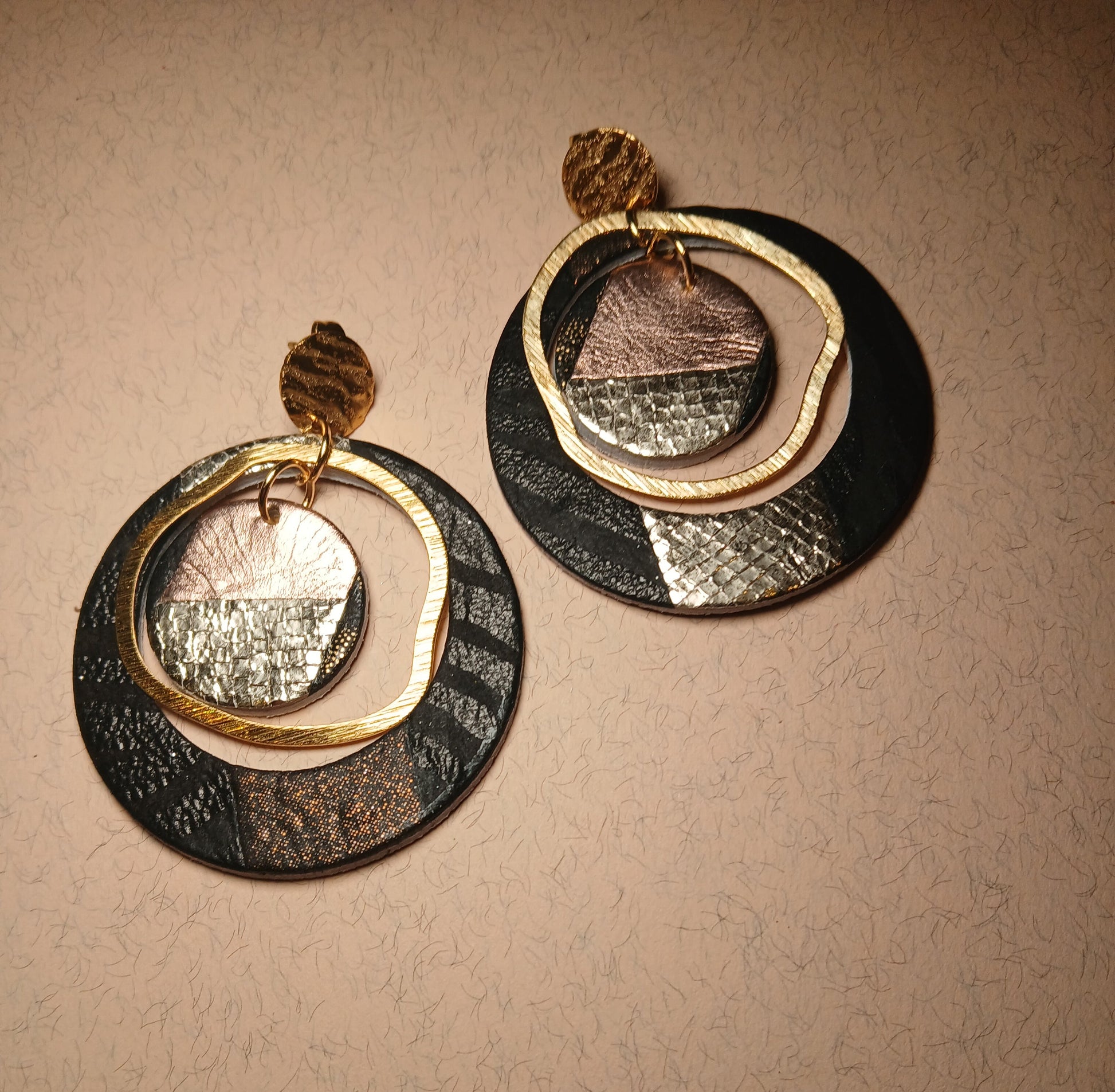 Boucle d'oreilles en cuir fantaisie irisé, holographique, paillettes, multicolore, de la "Gamme SIRIUS".