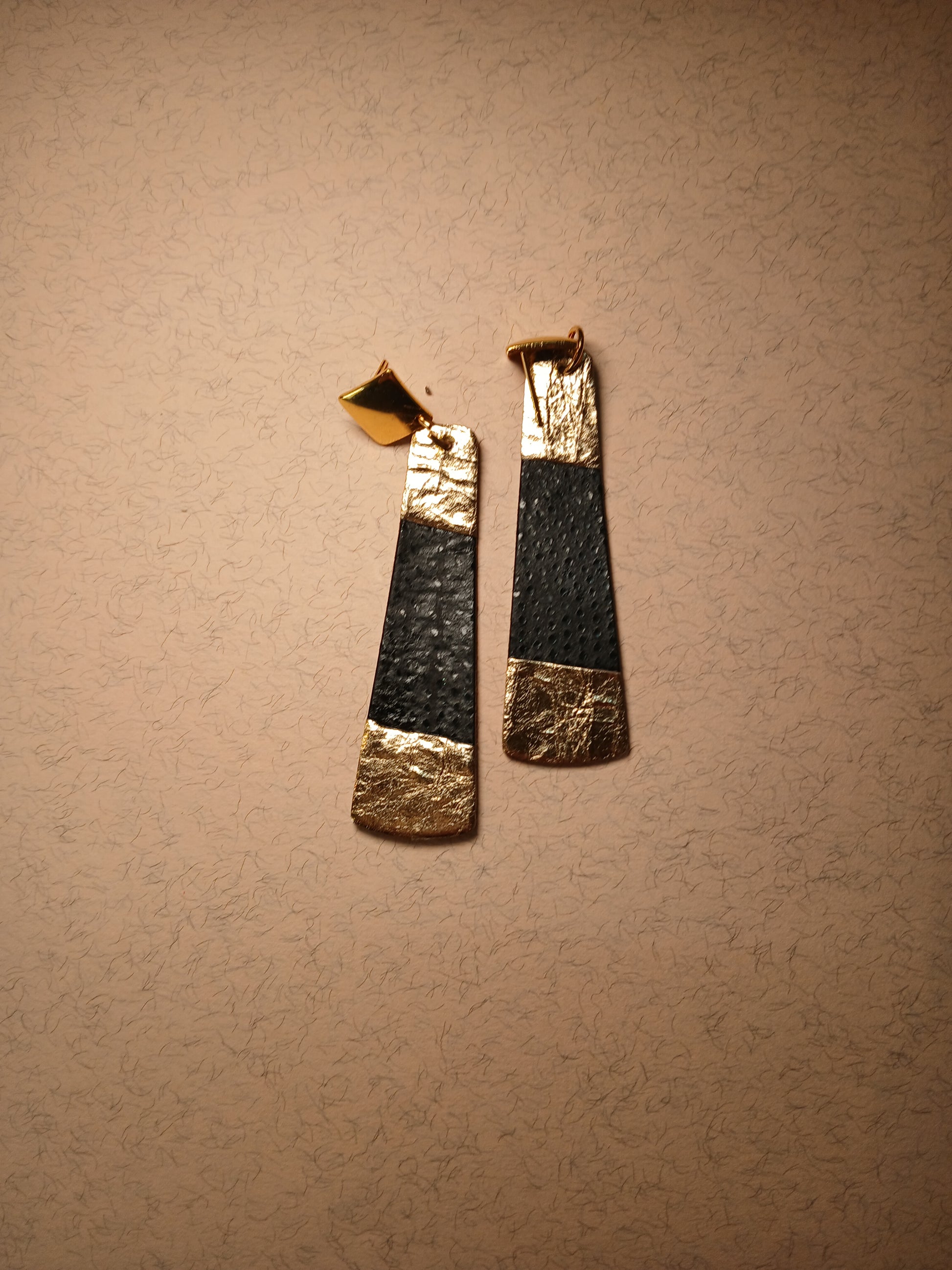Boucle d'oreilles en cuir fantaisie irisé, holographique, paillettes, de la "Gamme FUNANBULE".